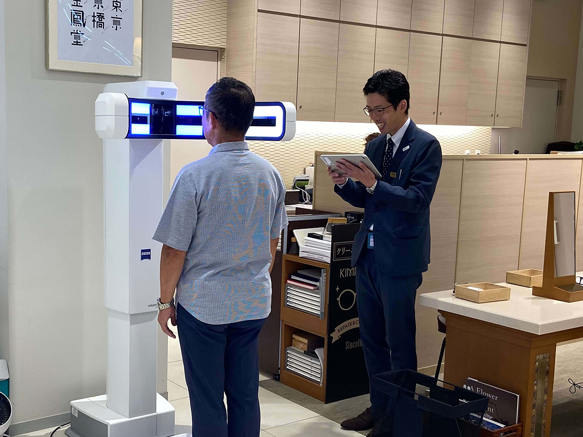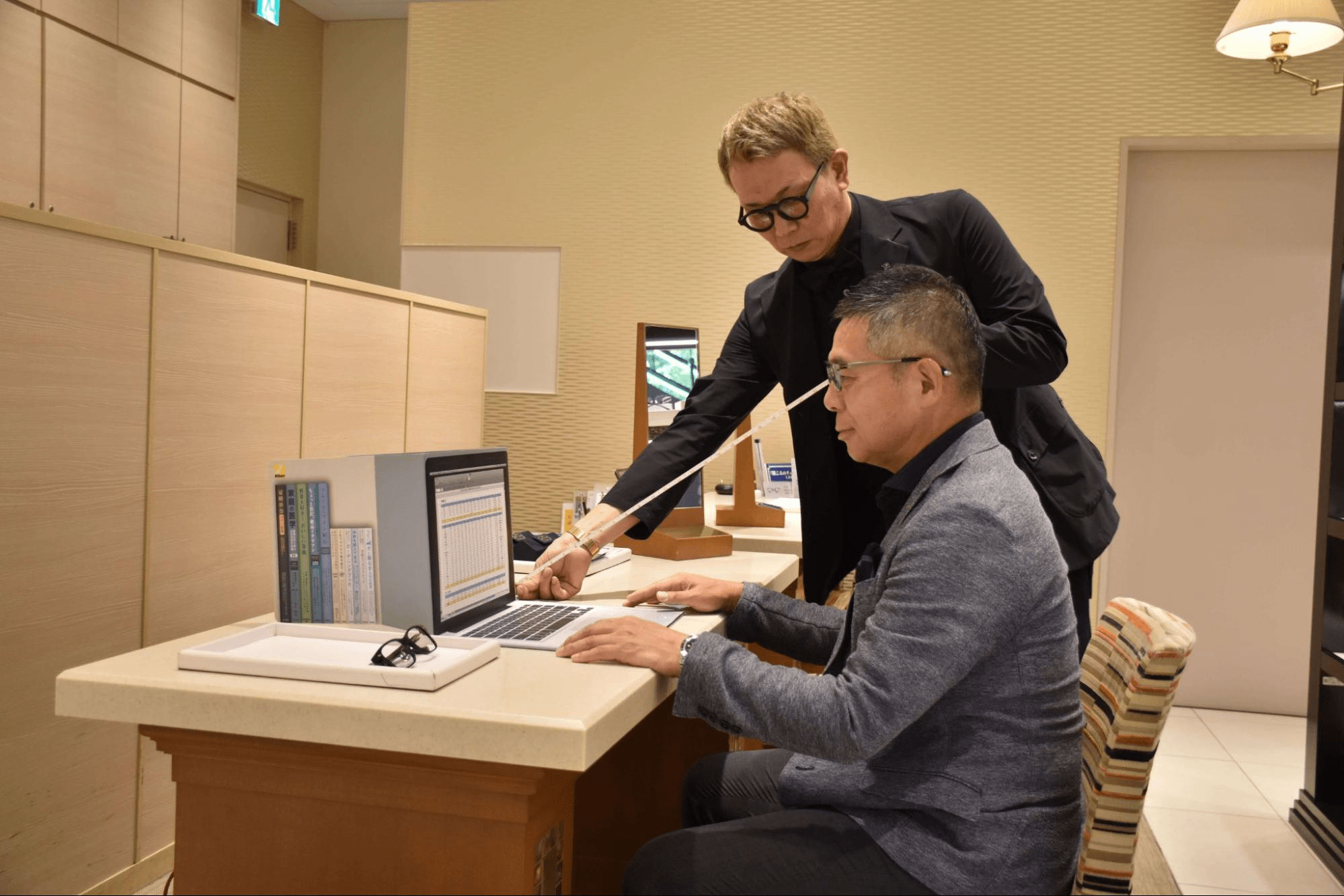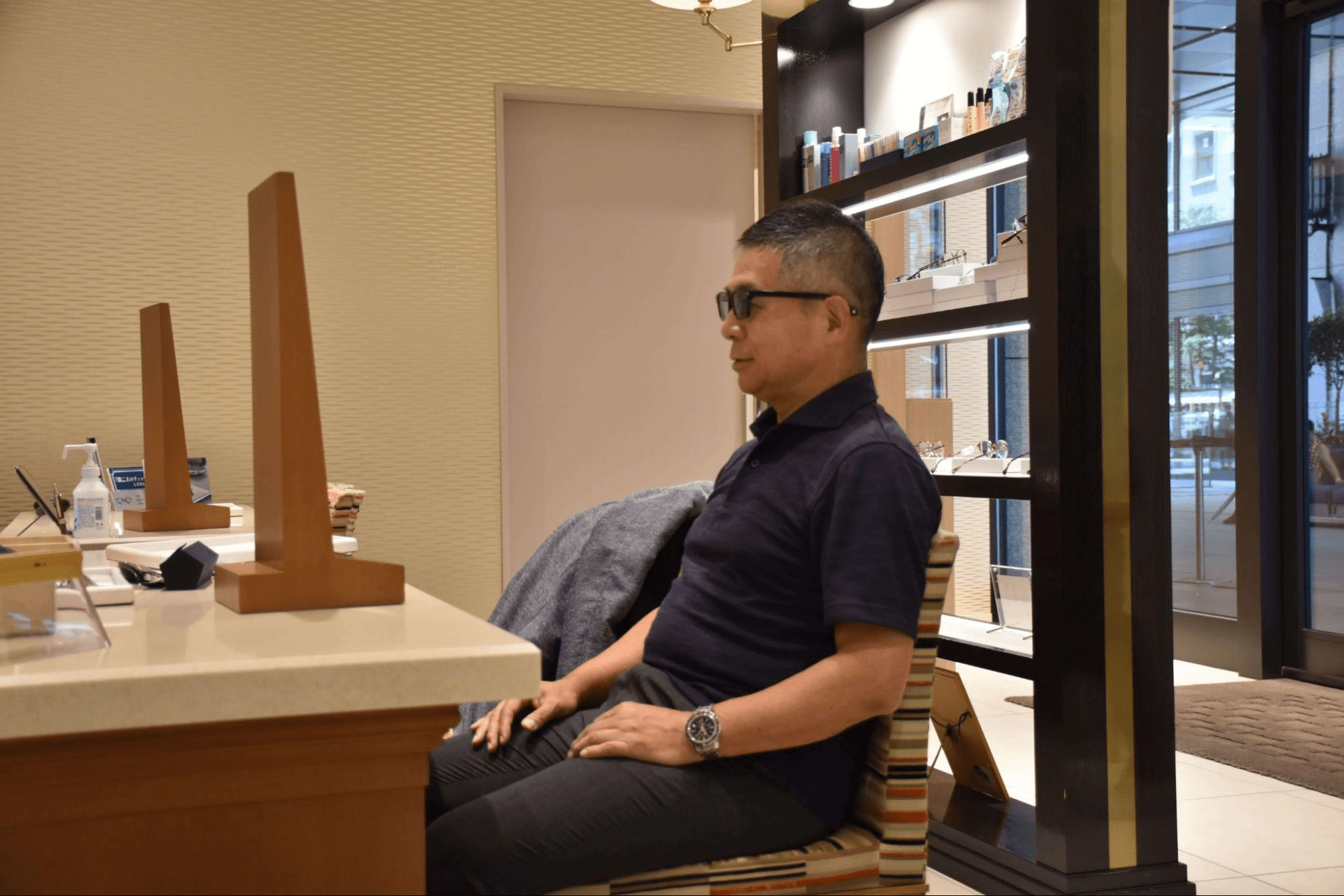 中村真人様は、百貨店業界で長年活躍され、現在は常務取締役として店舗運営や営業戦略などを統括されています。日々、PCやiPadを使ったデスクワークと、営業活動による外出を両立させる多忙なライフスタイルを送っており、スマホや書類、雑誌などを見る際には常に老眼鏡を使用していました。